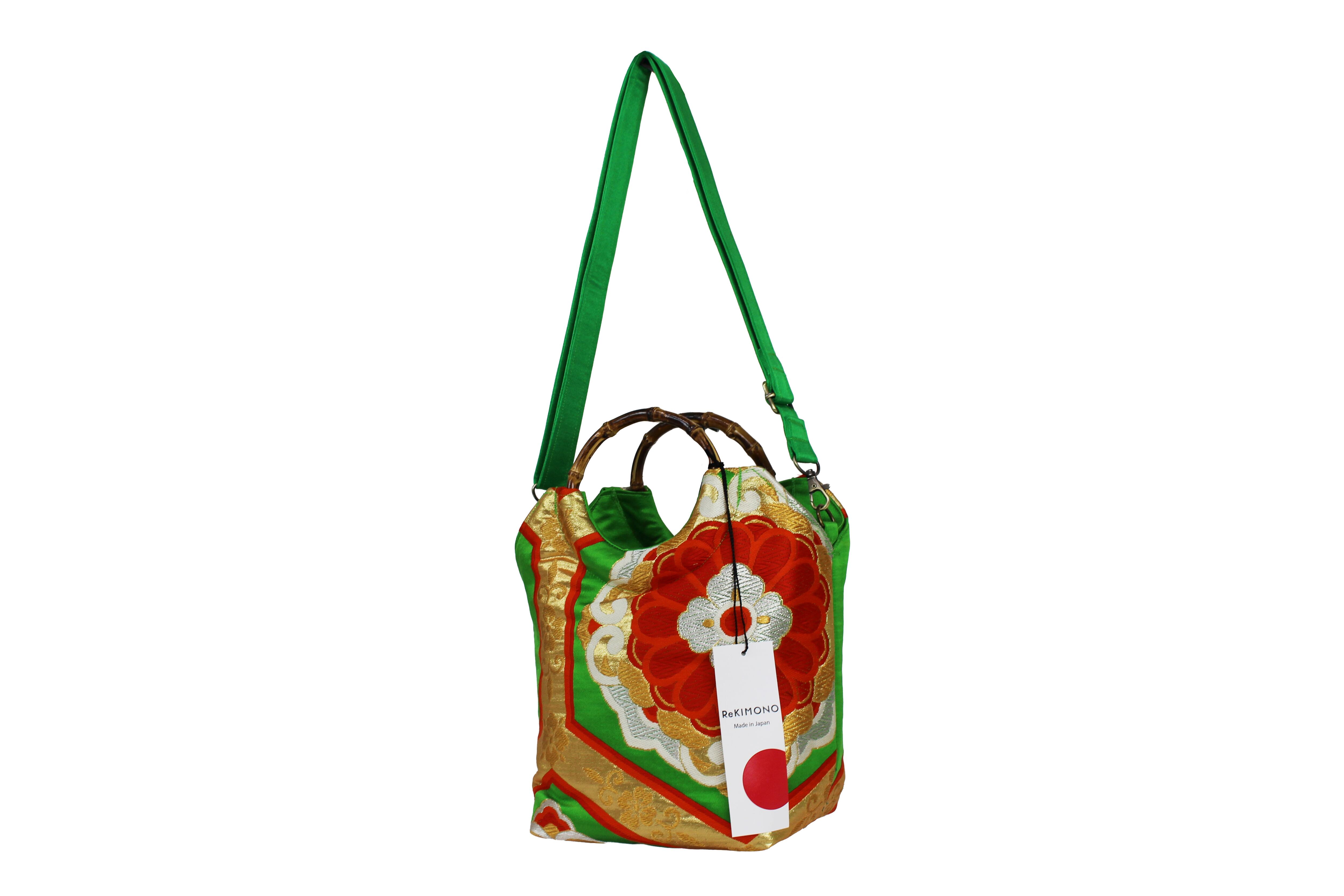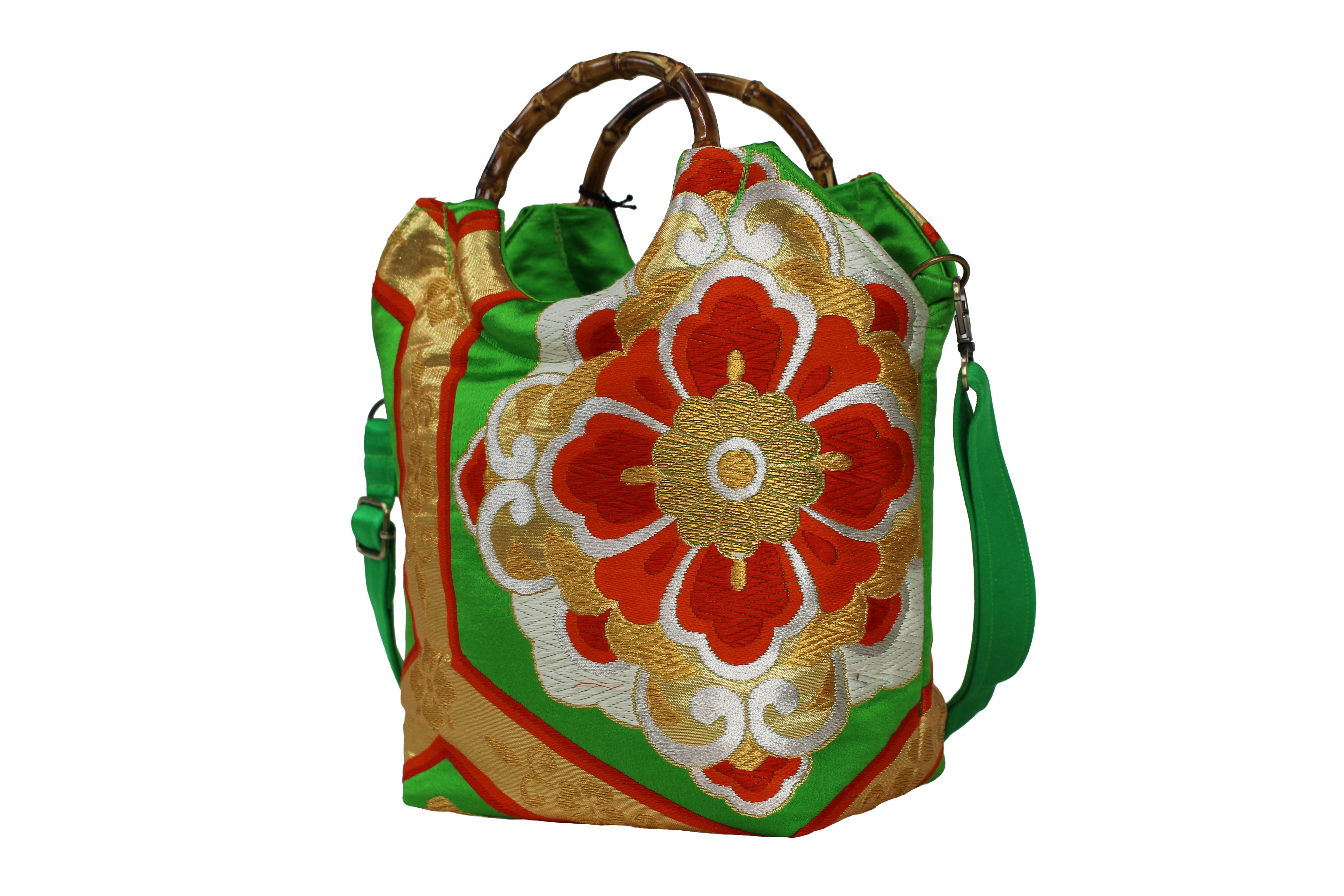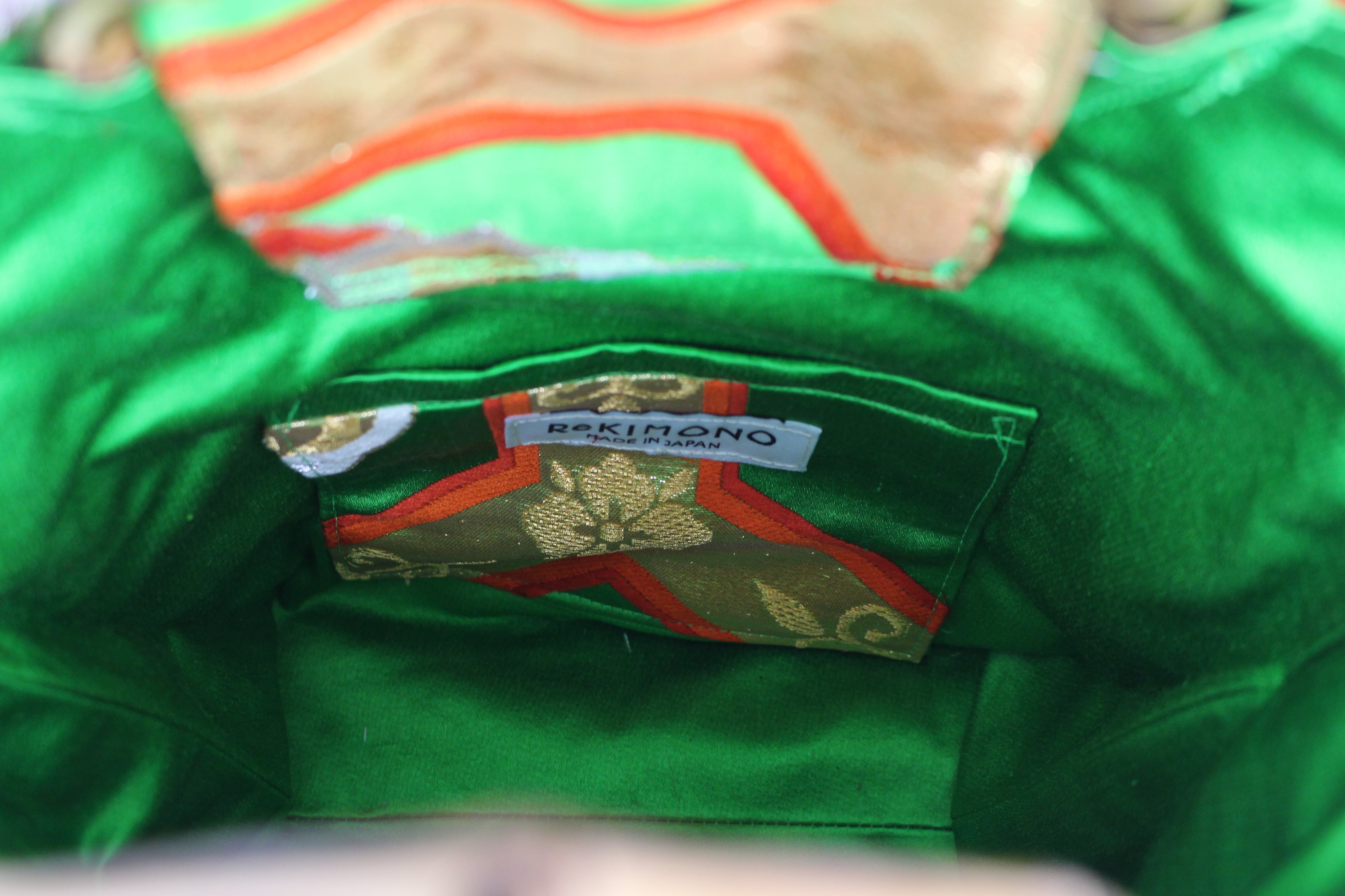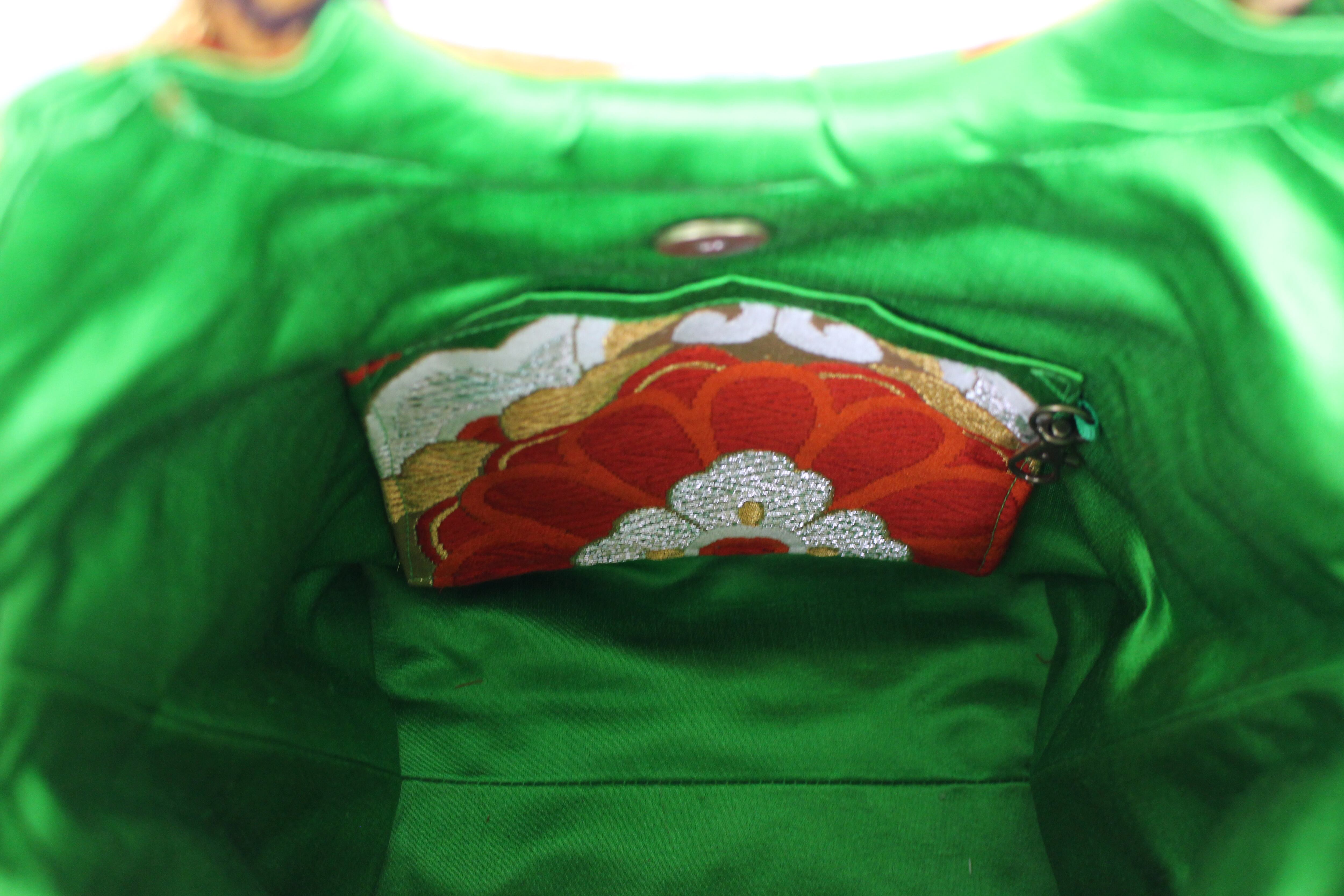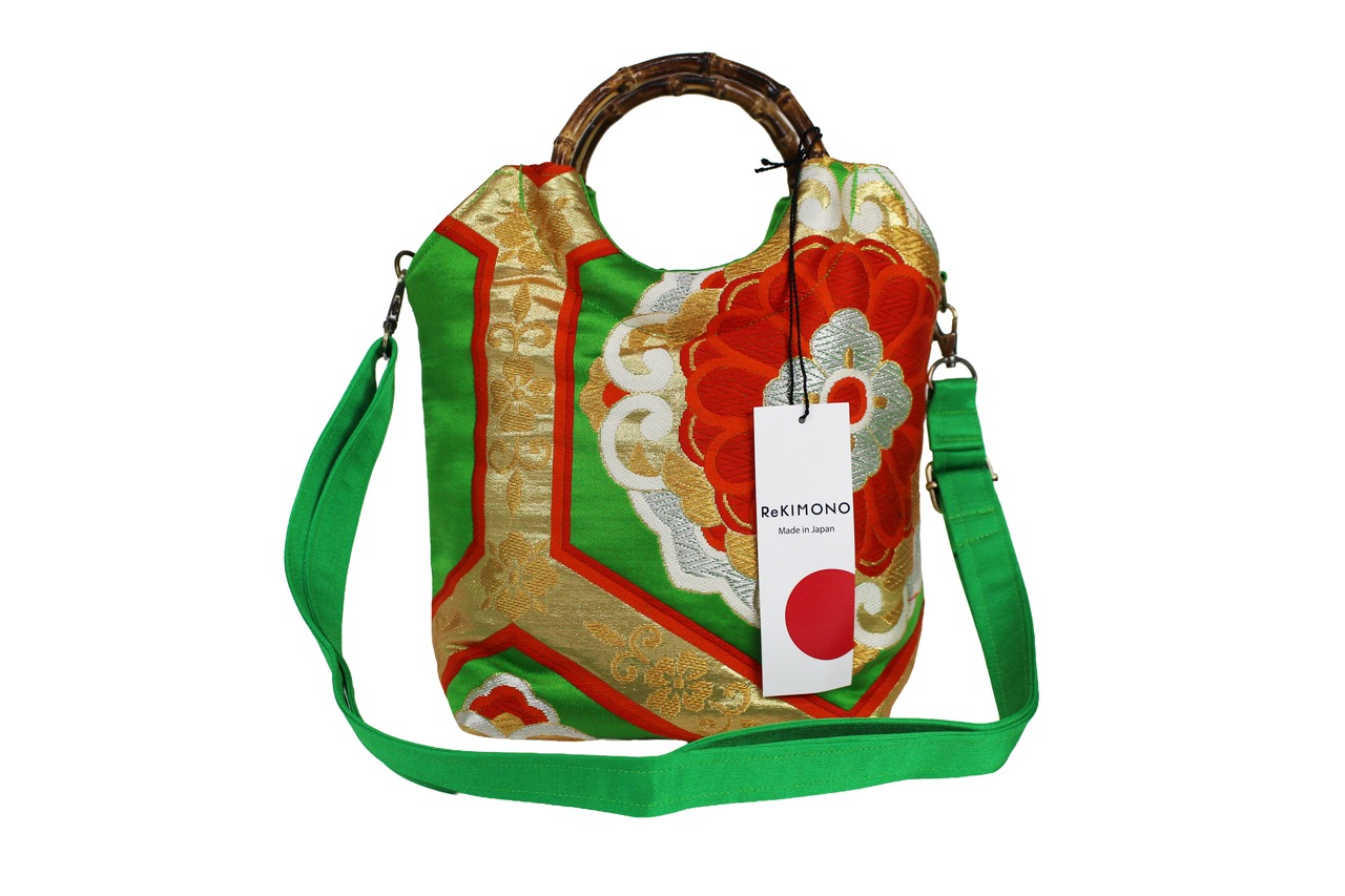 This handbag is made from used kimonos and obi.
