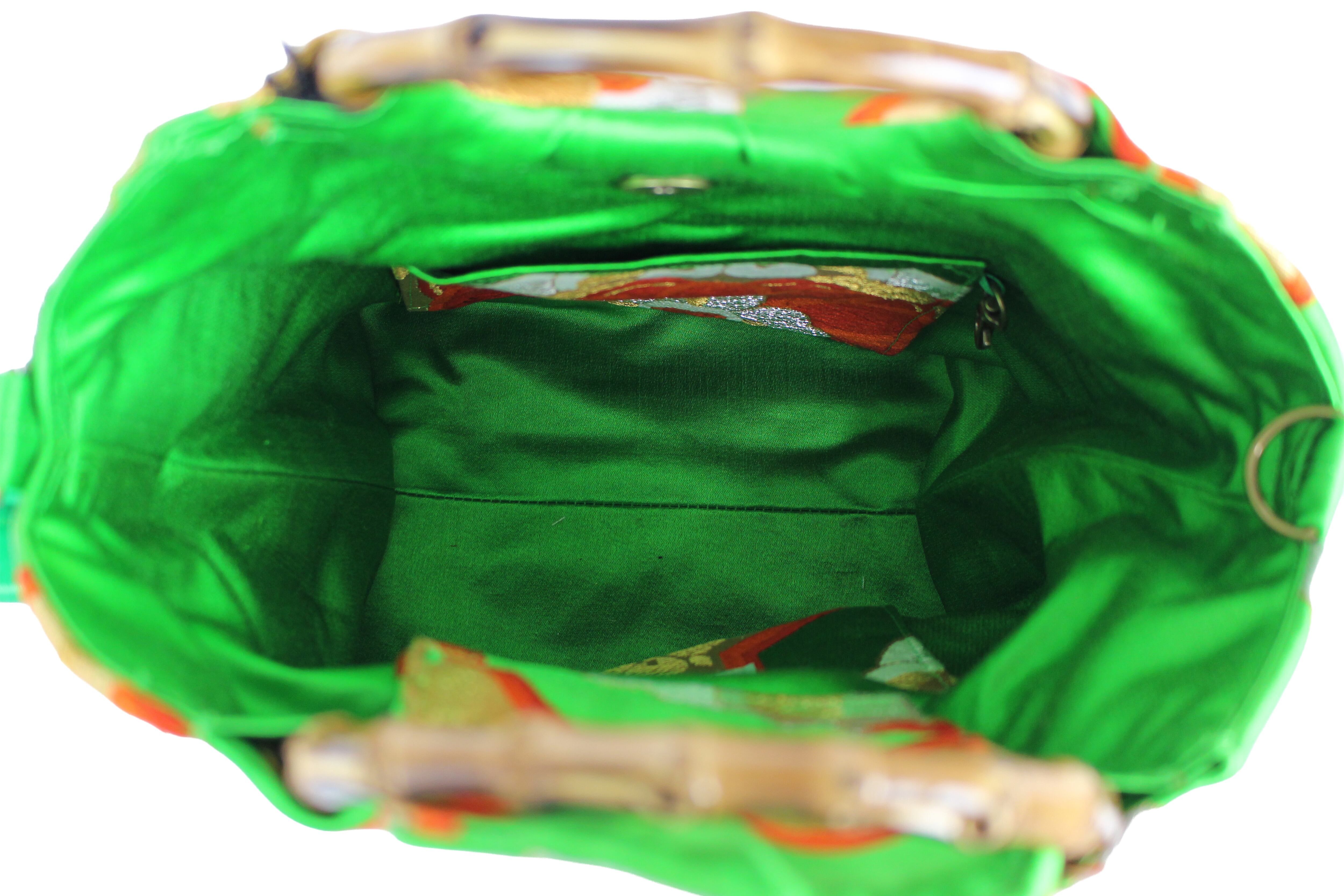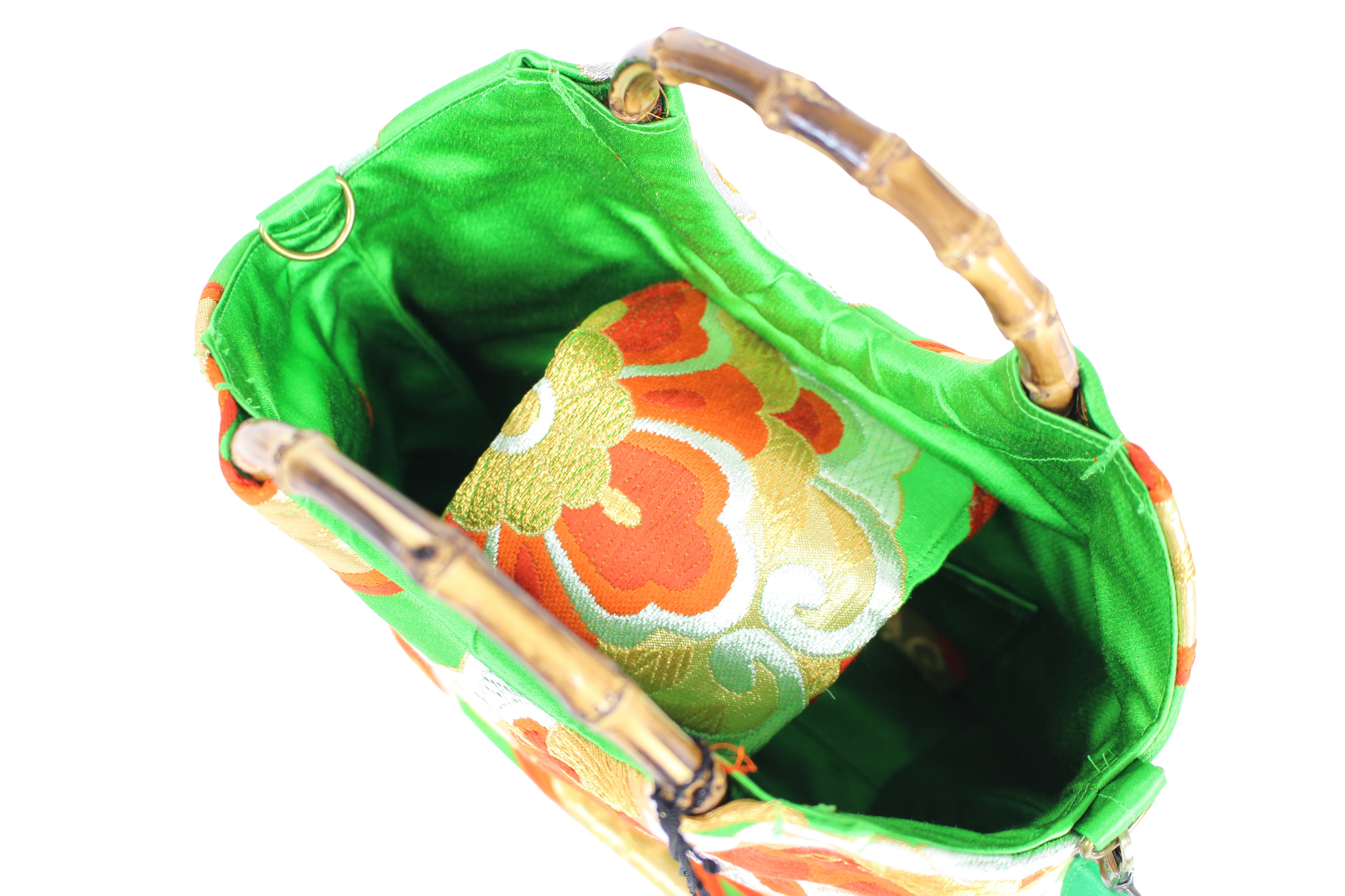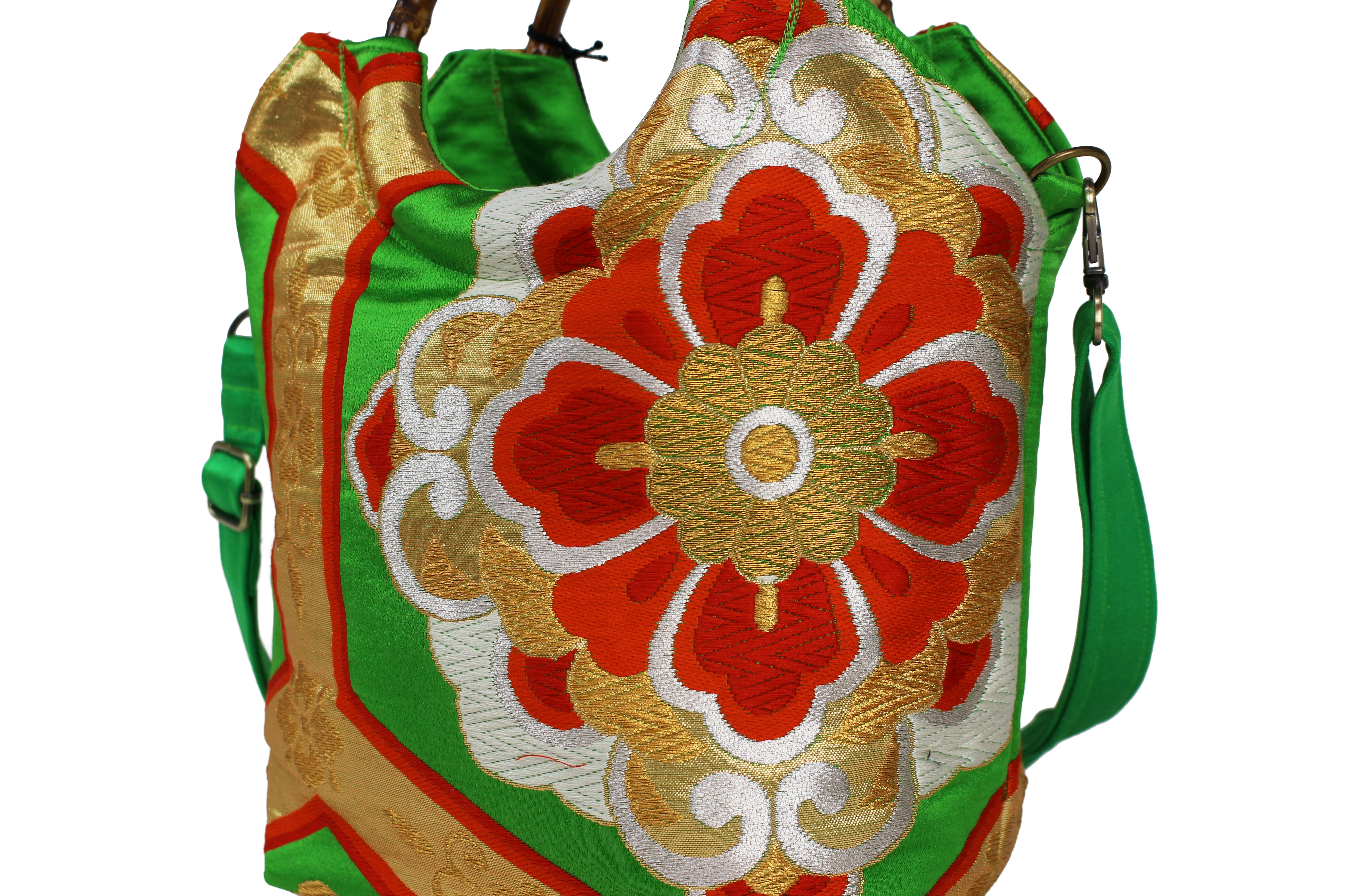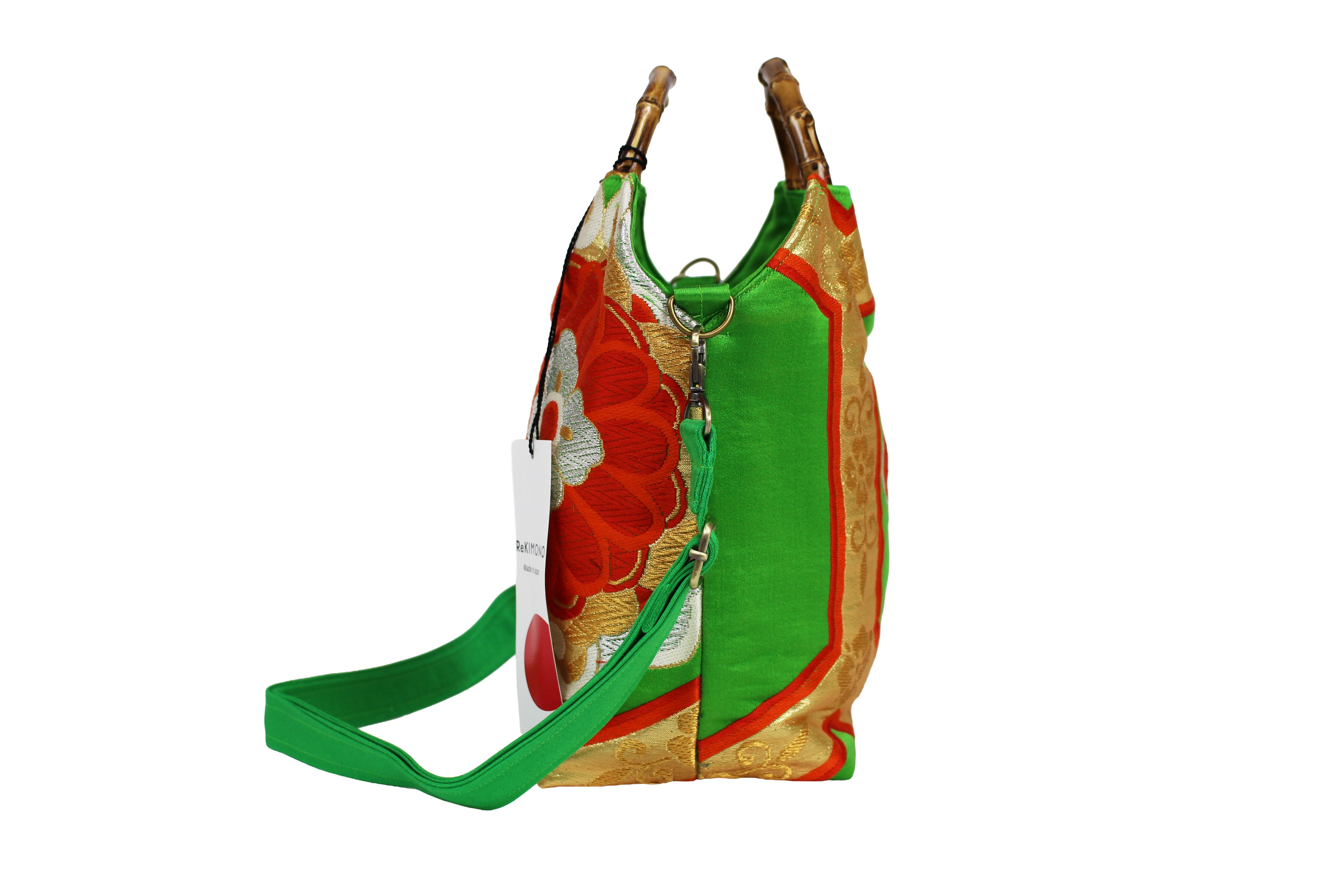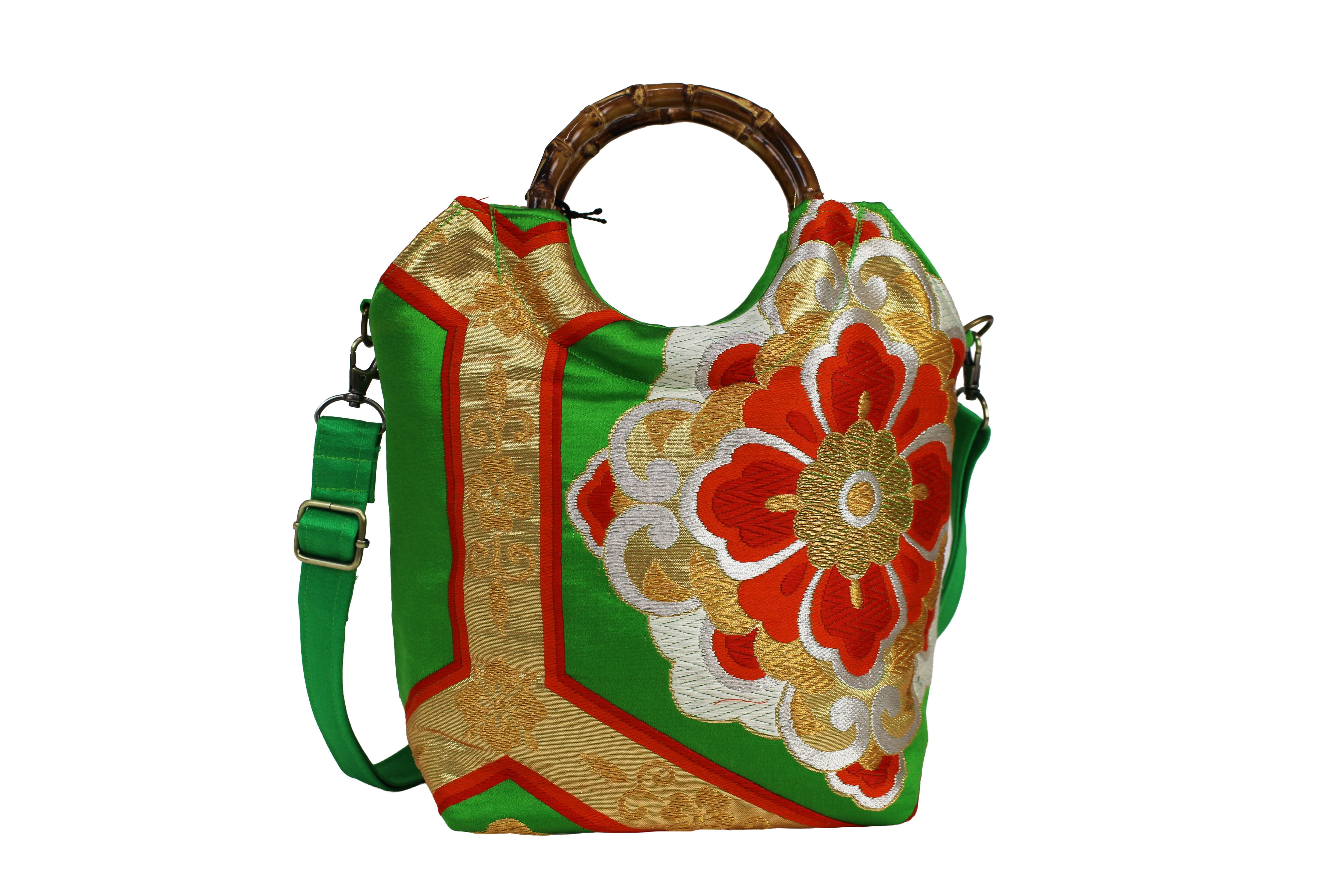 This handbag is made from used kimonos and obi.
