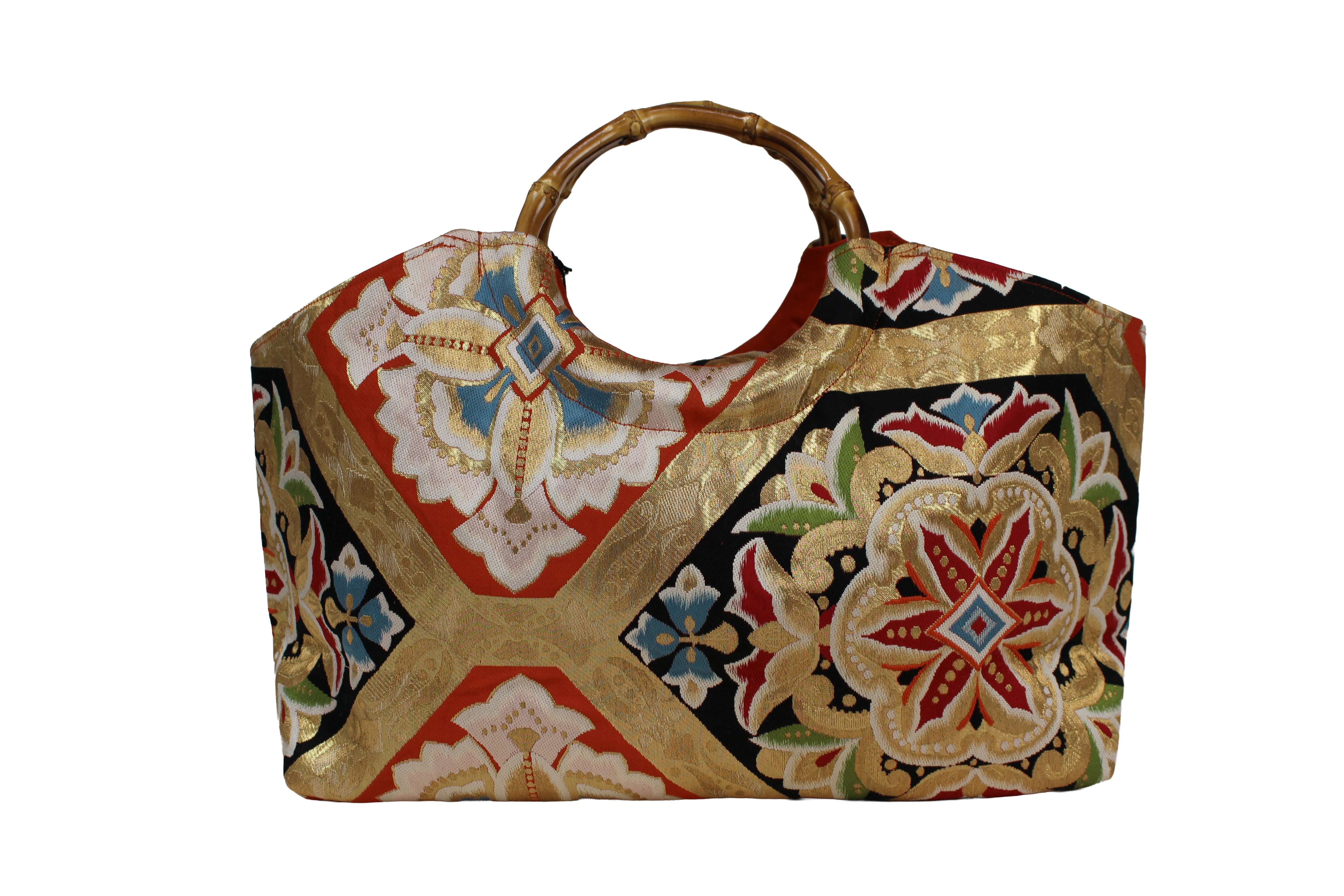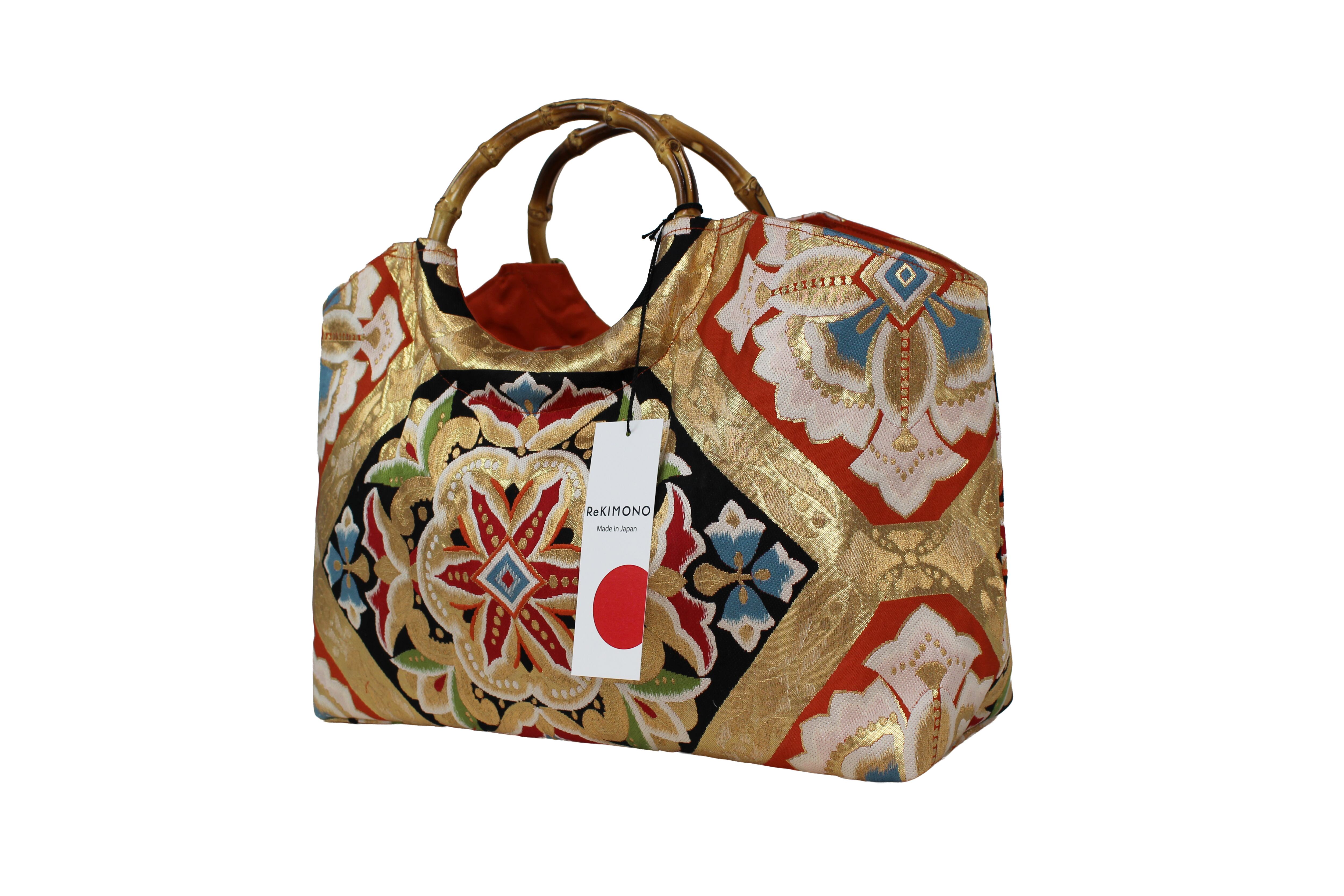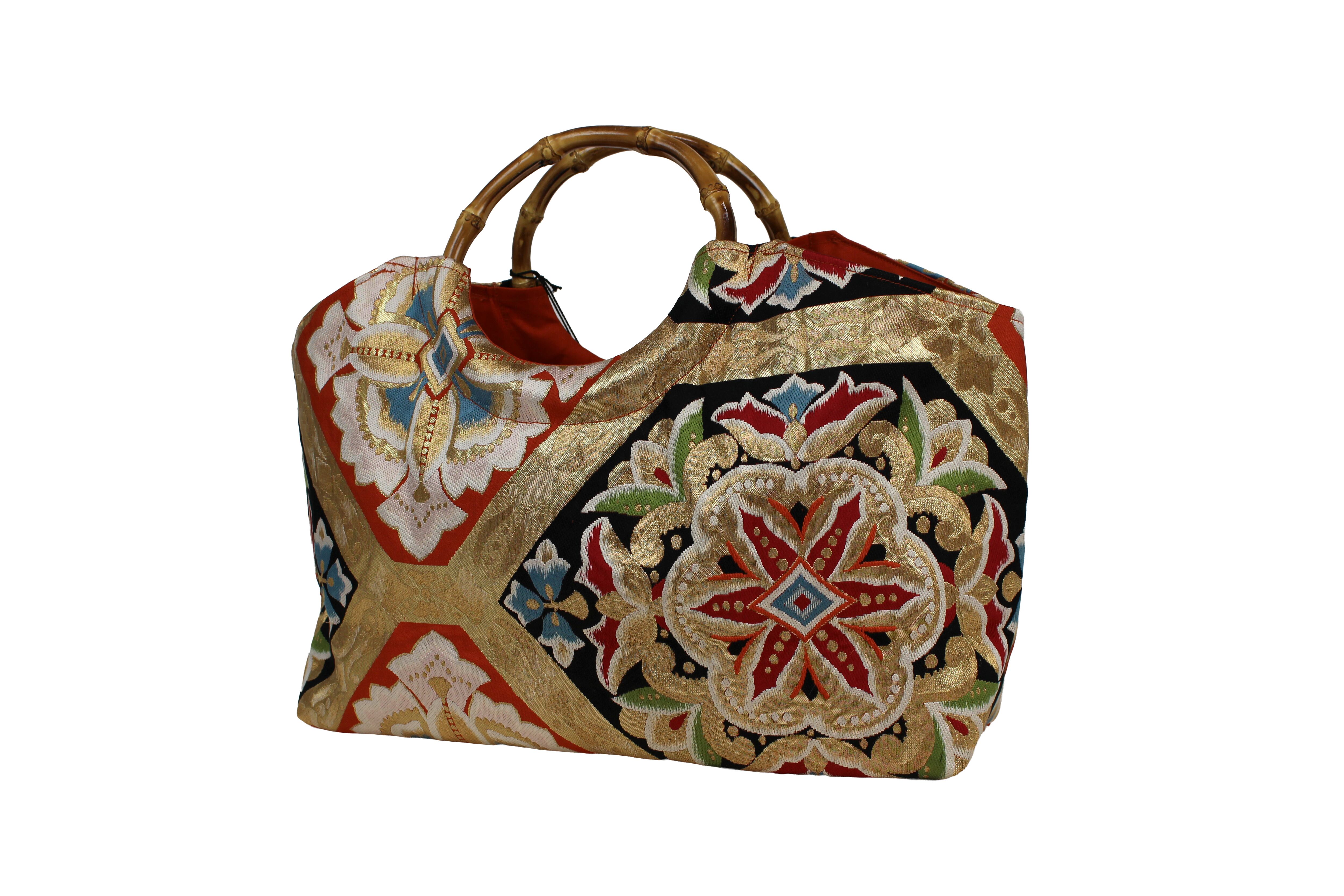 This handbag is made from kimonos and obi that are no longer in use.