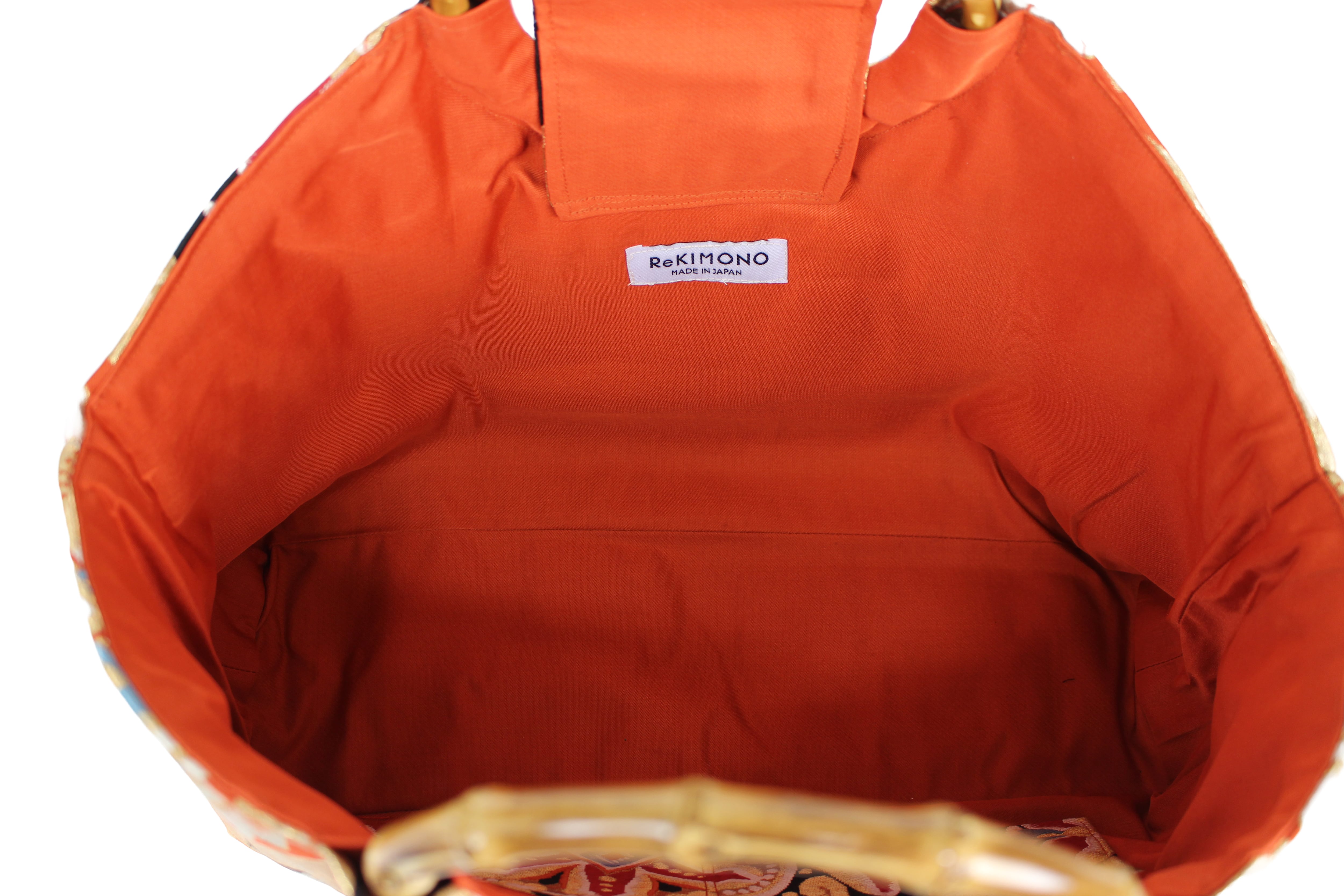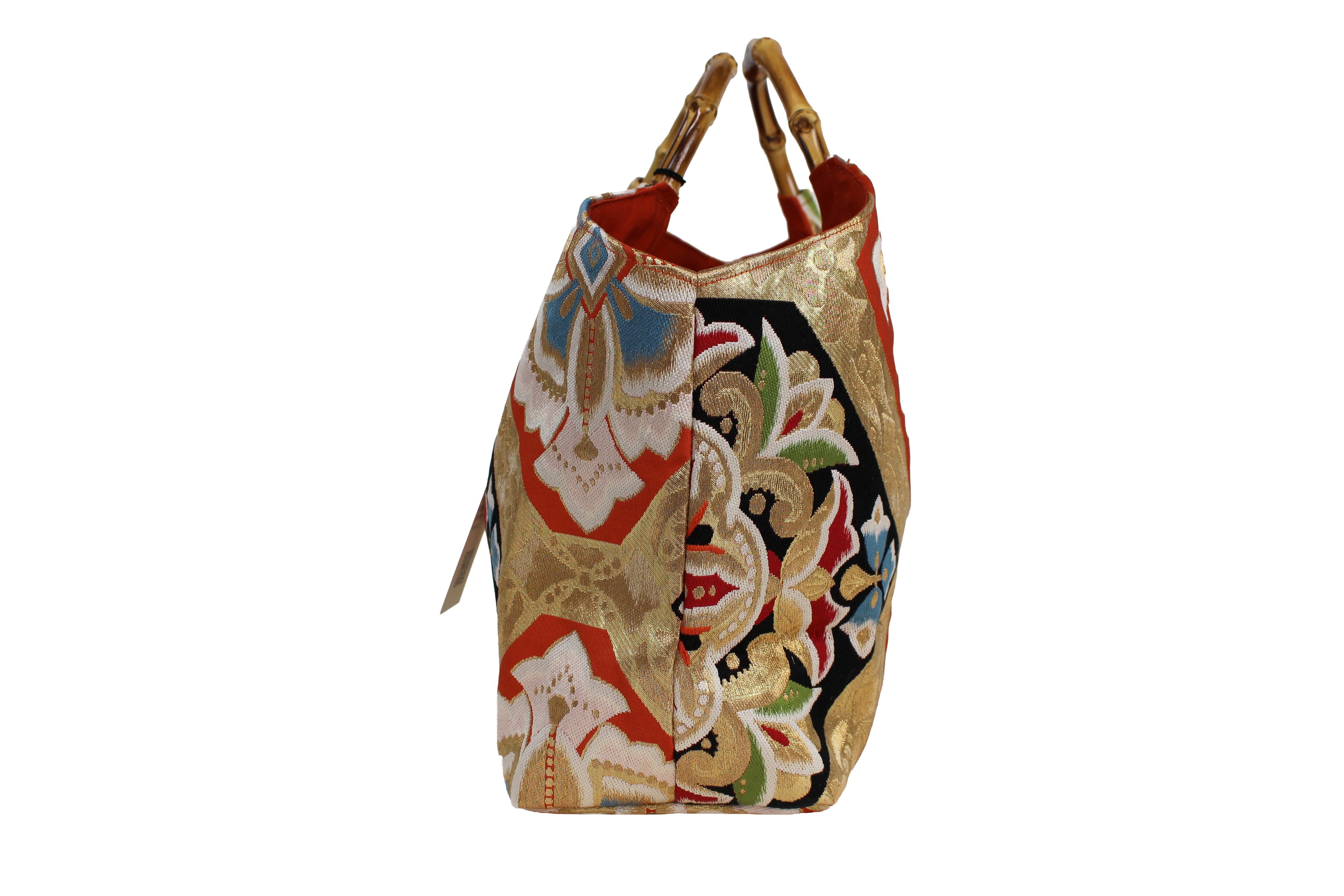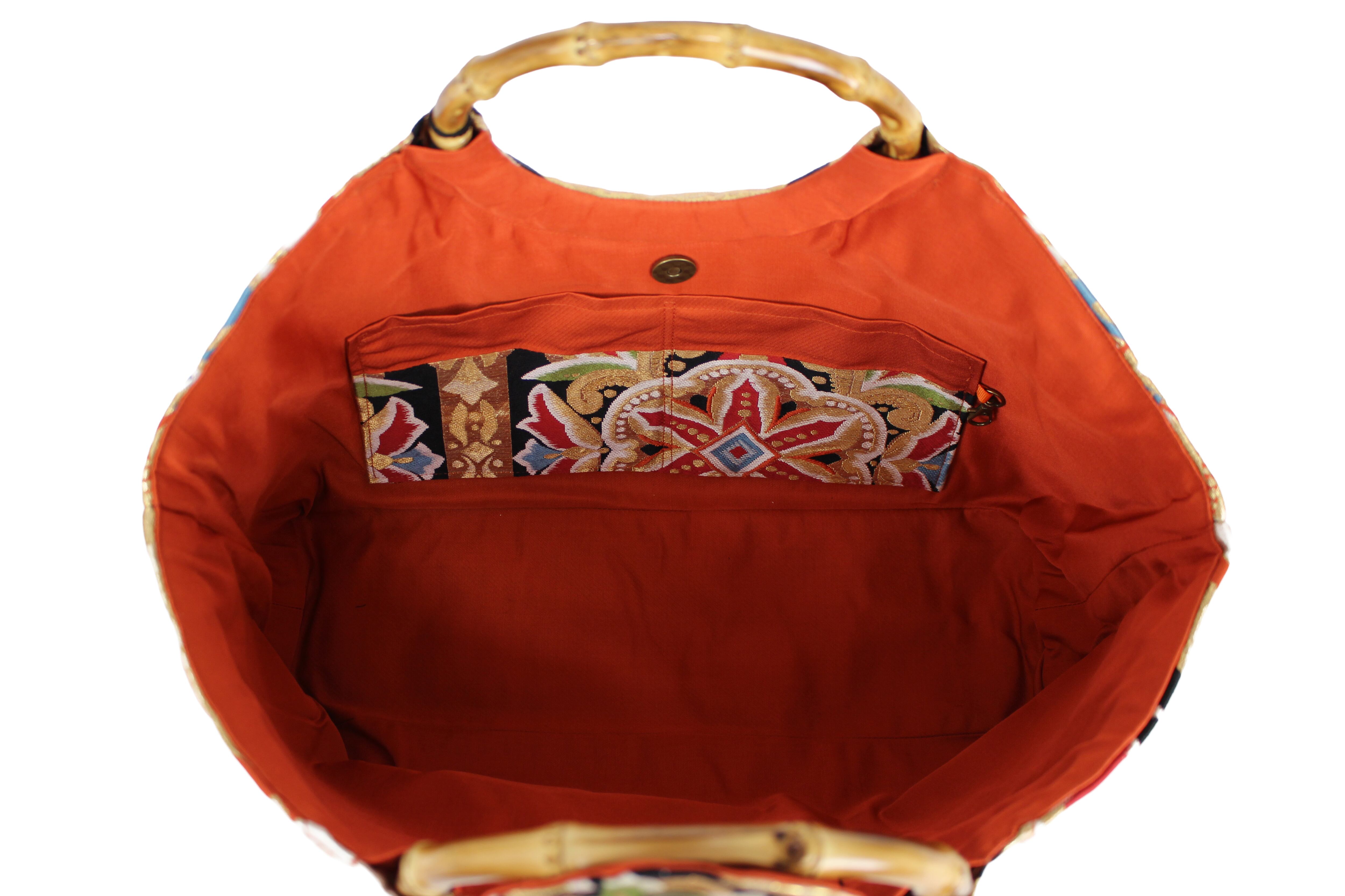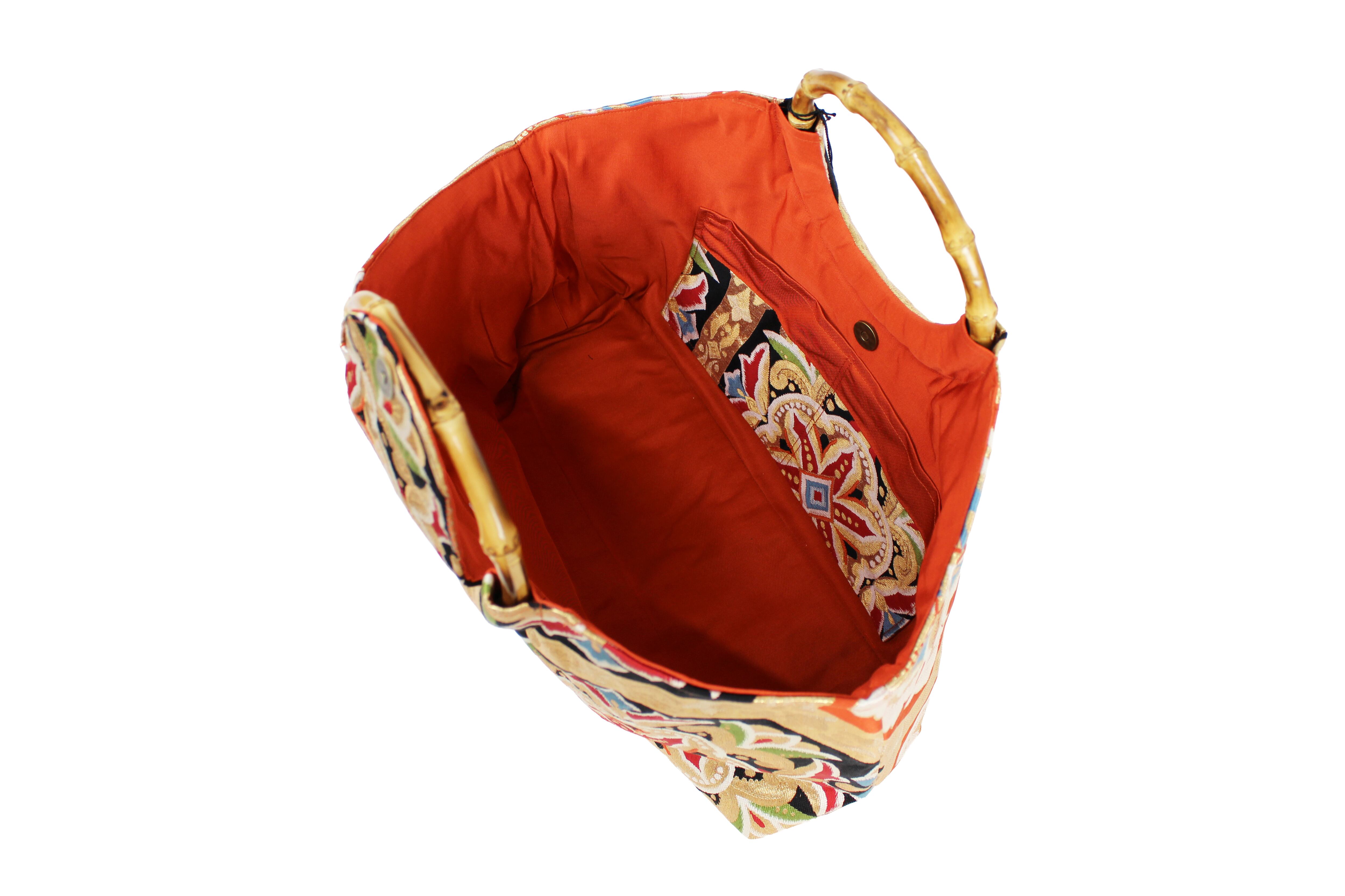 This handbag is made from kimonos and obi that are no longer in use.