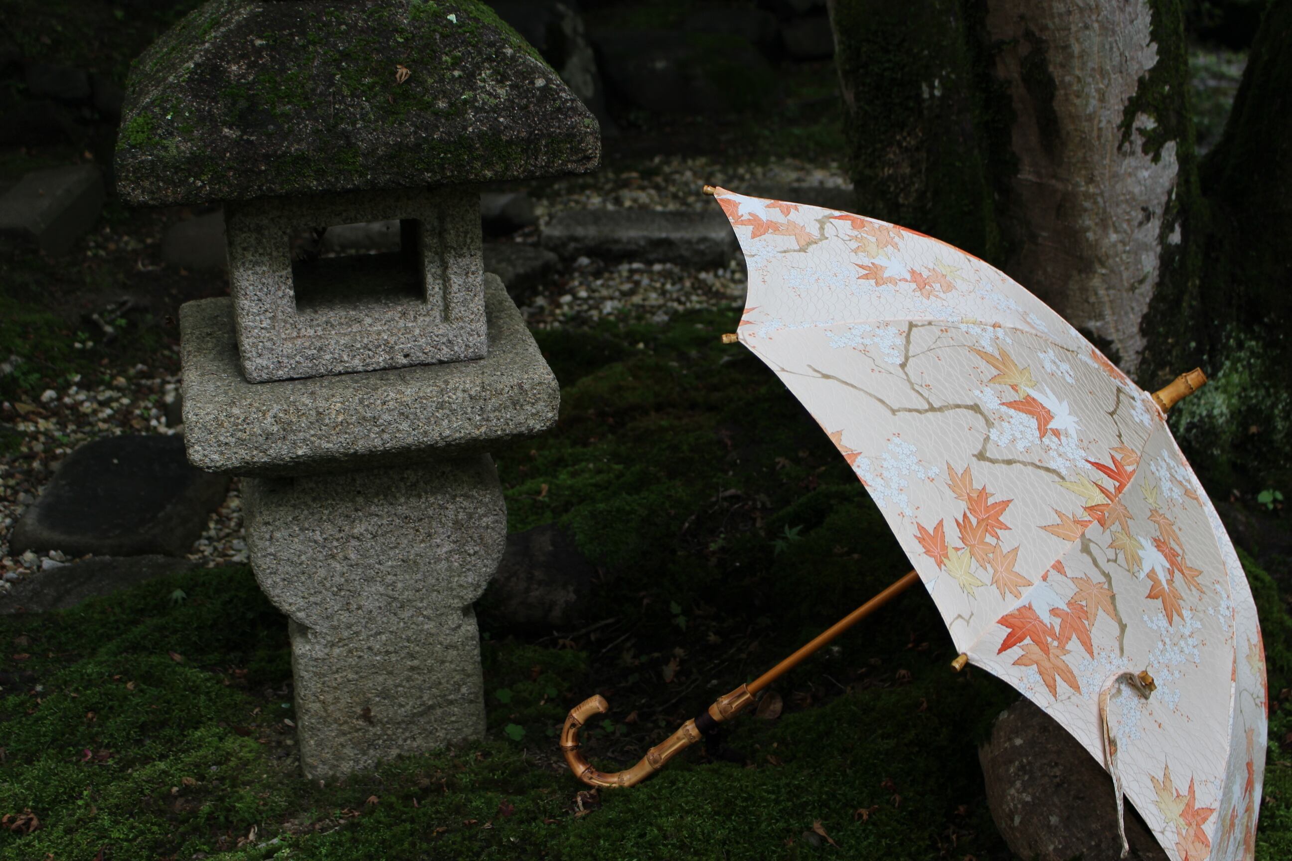 ハンドル・石突き・露先には着物柄とマッチする寒竹を使用。